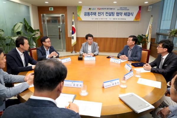 최근 성동구는 구청 전략회의실에서 한국전력공사(KEPCO) 광진성동지사를 비롯해 성동구 아파트입주자대표회의 연합회와 '전기 컨설팅 업무협약(MOU)'을 체결했다. 사진은 정원오 구청장을 비롯한 관계자들이 대화를 나누고 있는 모습 .(사진제공=성동구청)