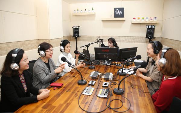 | ▲ 팟캐스트 ‘통통팟’ 프로그램 준비를 하고 있는 학부모들의 모습. (사진제공=서초구청) | ||