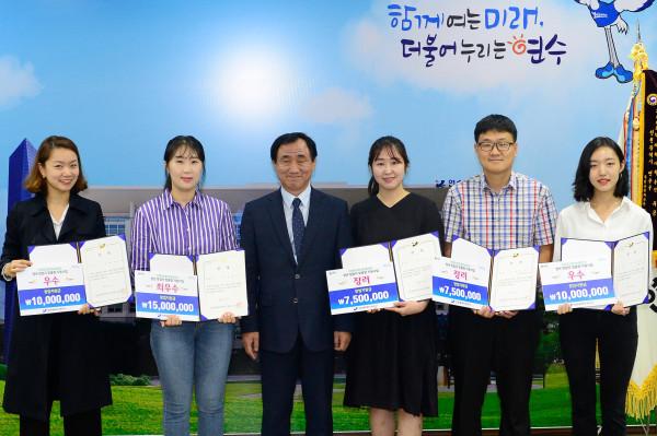 인천 연수구는 최근 지역주도형 청년일자리 지원사업으로 5팀을 최종 선정해 상장과 창업지원금을 전달했다. 사진은 고남석 구청장(왼쪽에서 세 번째) 및 관계자들이 기념촬영을 하는 모습. (사진제공=연수구청)