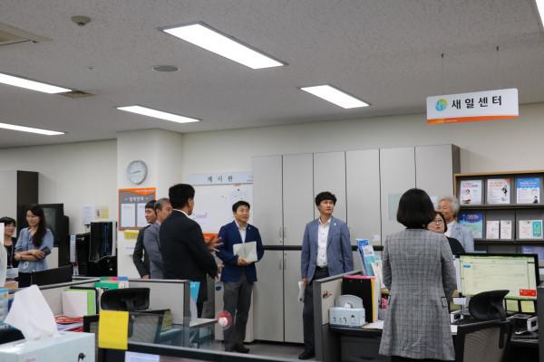 경기 화성시의회 교육복지위원회 위원들이 화성여성새로일하기센터를 방문, 시설을 둘러보며 관계자로부터 주요사업 추진현황 청취하고 있다. (사진제공=화성여성새로일하기센터)