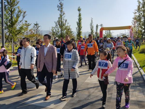 경기 양주시 보건소는 최근 ‘2018년도 The 건강하게 걷는 양주’ 걷기대회를 성황리에 개최했다. 사진은 대회에 참여한 이성호 시장 및 시민들이 걷고 있는 모습. (사진제공=양주시청)