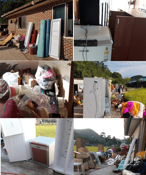 최근 발생한 제25호 태풍 콩레이 (KONG-REY)로 인해 경북 영덕군 축산 2리 마을회관 인근 농가들이 큰 피해를 입었다. 사진은 태풍피해로 인해 어질러진 가사도구와 가전제품들의 모습.(사진=시민일보)