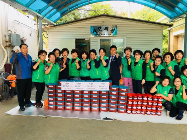 경기 양주시 백석읍 새마을부녀회는 지난 8일 백석읍 행정복지센터에서 사랑의 고추장 담그기 행사를 실시했다. 이날 담근 고추장은 부녀회원들이 직접 지역내 홀몸노인과 저소득계층 등 생활형편이 어려운 이웃 120가구에 전달한다. 사진은 관계자들이 기념촬영을 하는 모습. (사진제공=양주시청)