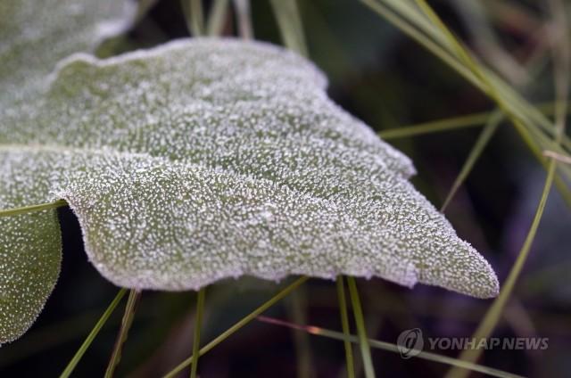 기온이 뚝 떨어진 11일 오전 대관령에 서리가 내렸다.