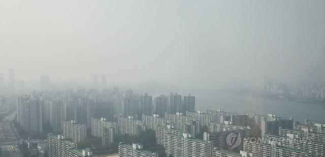 서울 대부분 지역의 초미세먼지가 한때나쁨을 기록한 15일 롯데월드타워에서 바라본 서울시내가 뿌옇다.