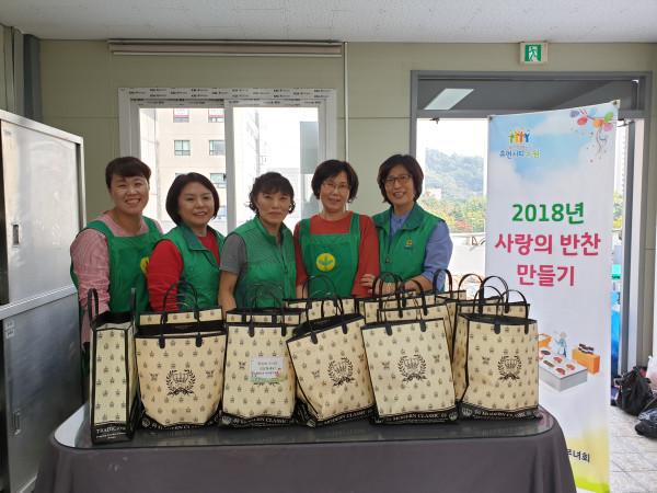 경기 수원시 영통구 영통1동 새마을부녀회는 15일 지역내 저소득 가정과 홀몸노인에게 사랑의 밑반찬을 만들어 전달했다. 사진은 참여자들이 기념촬영을 하는 모습. (사진제공=영통구청)