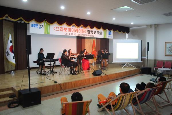경기 포천소방서는 지난 12일 소방서 대회의실에서 소방공무원 심신건강 향상을 위한 찾아가는 힐링 콘서트 ‘브라보 마이라이프’ 공연을 진행했다. 사진은 소방공무원들이 비치의자에 앉아서 콘서트를 관람하고 있는 모습. (사진제공=포천소방서)