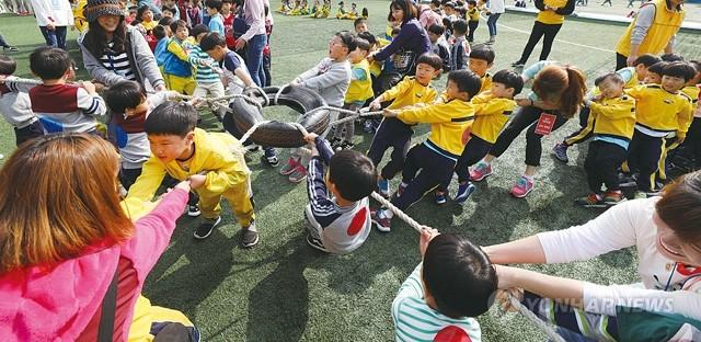 16일 강북구민운동장에서 꿈나무 큰잔치 한마음 운동회를 하고 있다.