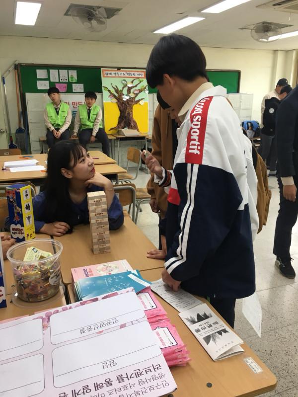 행사에서 ‘올바른 성 인식’ 테마로 부스를 마련한 생명사랑 서포터즈 미리내팀은 학생·교사와 함께하는 캠페인을 진행했다. 누구나 쉽게 참여할 수 있는 보드게임인 '젠가'에 피임기구의 정확한 사용법과 피임의 필요성, 양성평등 등과 관련된 질문지를 부착한 ‘러브젠가’를 활용해 많은 학생들의 활발한 참여를 이끌었다.