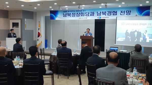 경기 오산상공회의소는 18일 오산웨딩의전당에서 김문환 오산시부시장, 전병운 오산상공회의소 회장 및 기업인, 유관기관장 등 70여명이 참석한 가운데 기업인 조찬 세미나를 개최했다. 사진은 김 부시장이 인사말을 하는 모습. (사진제공=오산시청)