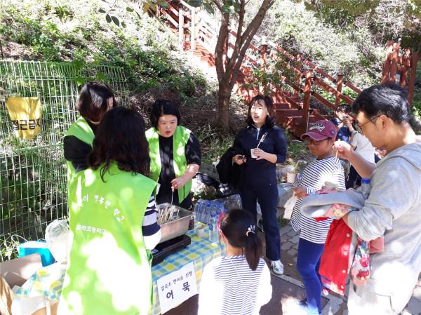 또 제2코너 자연놀이(광목천 꾸미기)에서 솜씨를 발휘해 광목천을 예쁘게 물들였으며, 산행 후 내려오는 입구에서 행복한 먹거리(어묵)로 따뜻한 어묵과 어묵 국물로 등반을 마친 보람을 느끼며 다소 쌀쌀했던 기운을 녹였다.