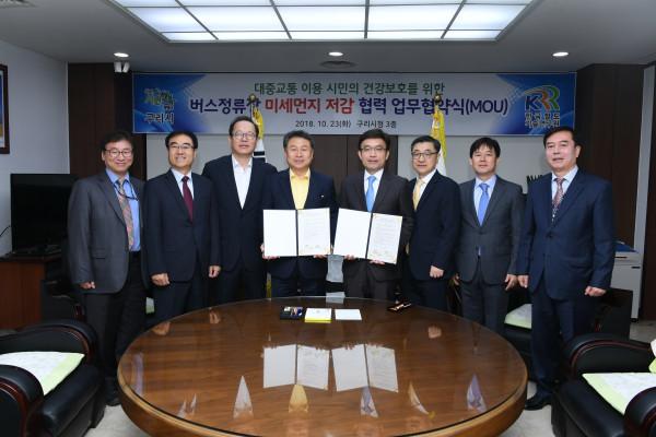 [구리=손우정 기자] 경기 구리시가 최근 시청에서 한국철도기술연구원과 ‘미세먼지 저감을 위한 업무협약(MOU)’을 체결했다.
