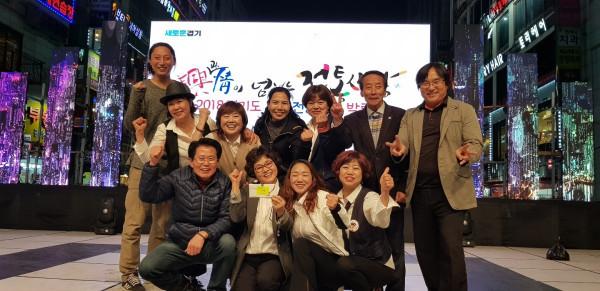 경기 여주시 소재 여주한글시장의 탭댄스 동아리가 최근 군포시 산본로데오거리에서 열린 ‘경기도 우수시장 박람회’에서 대상을 수상하는 영예를 안았다. 사진은 대상 수상 후 탭댄스 동아리 관계자들이 기념촬영을 하는 모습. (사진제공=여주시청)