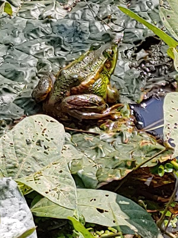 | ▲ 경기 성남시 탄천 습지생태연에서 2급 멸종위기 야생생물들이 최근 잇따라 발견됐다. 사진은 가시연 위에 앉아있는 금개구리 모습. (사진제공=성남시청) | ||