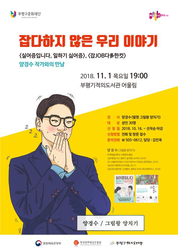 [인천=문찬식 기자] 인천 부평구는 오는 11월1일 '부평기적의도서관'에서 웹툰 작가와의 만남 프로그램 ‘잡다하지 않은 우리 이야기’를 개최한다.