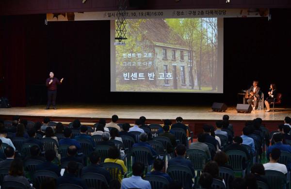 | ▲ 지난해 진행한 감성 친절 교육 ‘빈센트 반고흐와 함께하는 힐링 콘서트’ 진행 모습. (사진제공=동대문구청) | ||