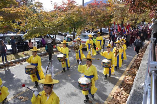 경기 동두천시 소요산야외음악당에서는 지난 27일 시민과 관광객의 환호 속에 '제32회 소요단풍문화제'가 성대히 개최됐다. 사진은 이날 행사에서 ‘어유소 장군’ 승전 행렬 퍼포먼스가 진행 중인 모습. (사진제공=동두천시청)