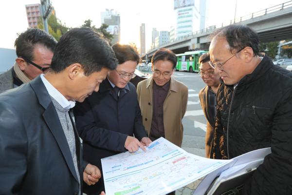 | ▲ 채현일 영등포구청장을 비롯한 부서 관계자, 도시계획전문가 등이 영등포로터리 현장을 방문해 현장점검을 하고 있는 모습. (사진제공=영등포구청) | ||