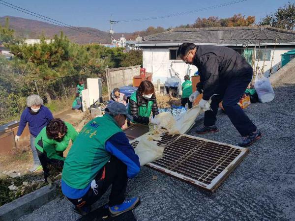 경기 여주시 점동면 새마을지도자협의회는 최근 청안2리 홀몸노인을 방문해 청소 및 도배, 전기 설비, 싱크대 교체 등 '사랑의 집 고쳐주기' 사업을 추진했다. 사진은 협의회 관계자들이 홀몸노인 자택에서 정비 작업을 하는 모습. (사진제공=여주시청)