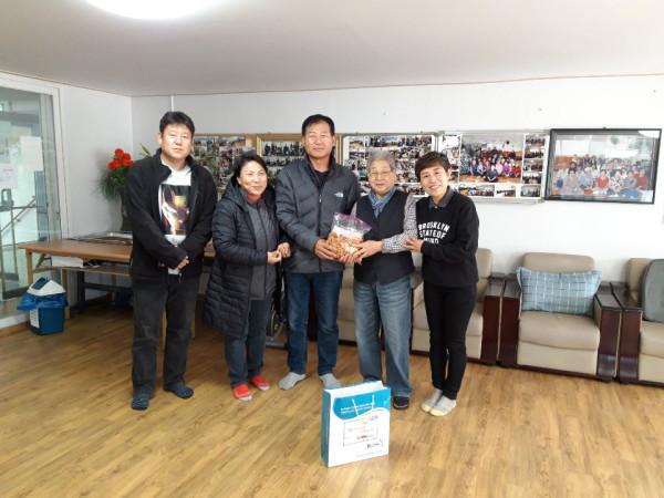 인천 연수구 선학동 지역사회보장협의체와 통장자율회는 최근 지역내 경로당 12곳에 감말랭이(1kg)와 건강음료수 2박스씩을 직접 방문해 전달했다. 사진은 관계자들이 기념촬영을 하고 있는 모습. (사진제공=연수구청)