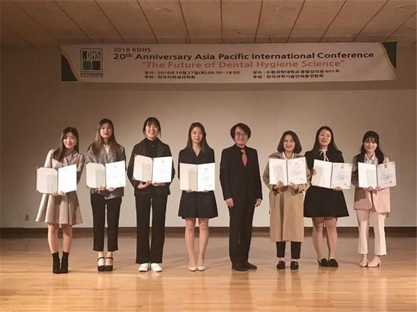 그 밖에도 ‘치과 진료진 명찰 패용 의무화에 따른 실태 및 환자들의 인식조사’라는 주제로 발표한 치위생학과 김서란 박소연 이희련 장희진 조채연 황희주 학생은 동상을 수상했다.