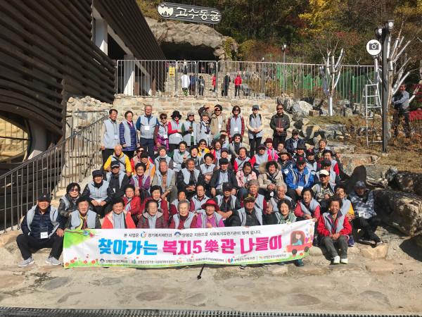 경기 양평군은 지난 2일 지역내 5개 복지기관 연합사업으로 양서·양동면 지역주민 70명과 함께 충북 단양지역 일원에서 ‘찾아가는 복지5락(樂)관 나들이 행사’를 진행했다. 사진은 고수동굴을 방문한 관계자들이 기념촬영을 하는 모습. (사진제공=양평군청)