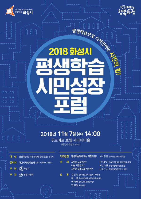[화성=김정수 기자] 경기 화성시가 7일 푸르미르호텔에서 ‘2018 평생학습 시민성장 포럼’을 개최한다.