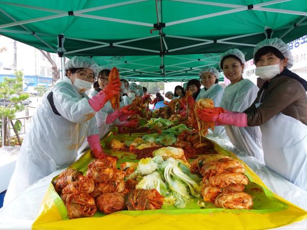 경기 안산시 본오3동 지역사회보장협의체는 6일 협의체 위원과 직능단체 회원 50여명이 참여한 가운데 지역내 홀몸노인과 저소득 취약계층을 위한 ‘사랑의 김장나눔 행사’를 진행했다. 사진은 참가자들이 김장을 담고 있는 모습. (사진제공=안산시청)