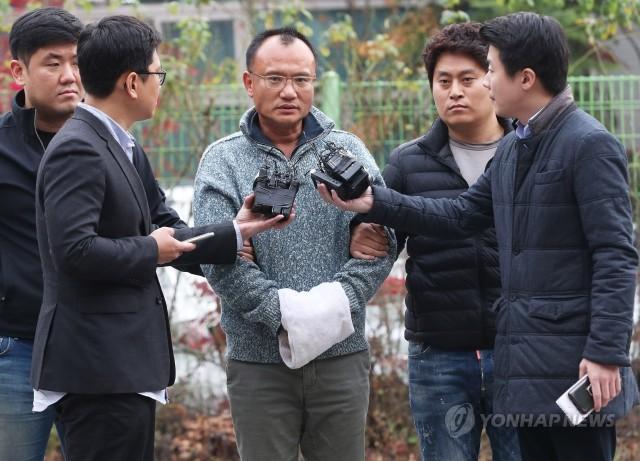 폭행과 강요, 마약류 관리에 관한 법률 위반 등의 혐의로 체포된 양진호 한국미래기술 회장이 7일 오후 경기도 수원시 경기남부지방경찰청으로 압송되고 있다.