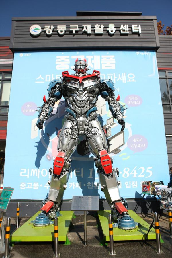 | ▲ 강동구재활용센터에 설치된 정크아트 ‘태권X’ (사진제공=강동구청) | ||