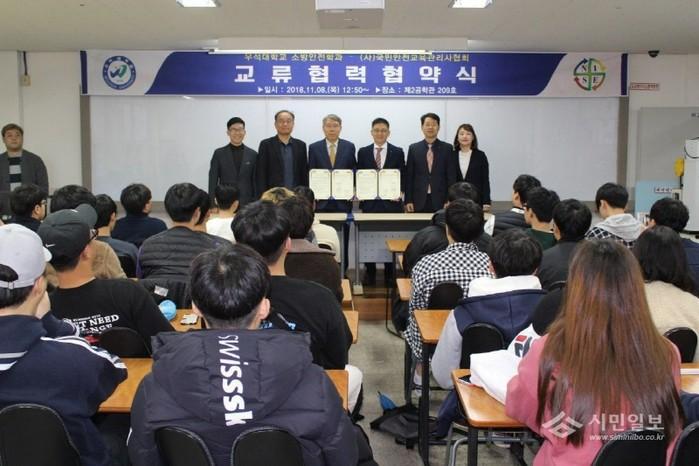 이날 소방안전학과는 국민안전교육관리사협회, 학교안전관리사협회와 교류협력 협약식을 갖고, 향후 ▲각 기관이 보유하고 있는 우수한 인적ㆍ물적 자원의 상호 교류 ▲양 기관이 필요로 하는 교육과정 협의 및 실무 교류 ▲학생들의 인턴 및 현장실습 기회 우선 제공 ▲학생들의 취업지원을 위한 긴밀한 협의와 협력을 추진함에 있어 상호 긴밀히 협력하기로 했다.