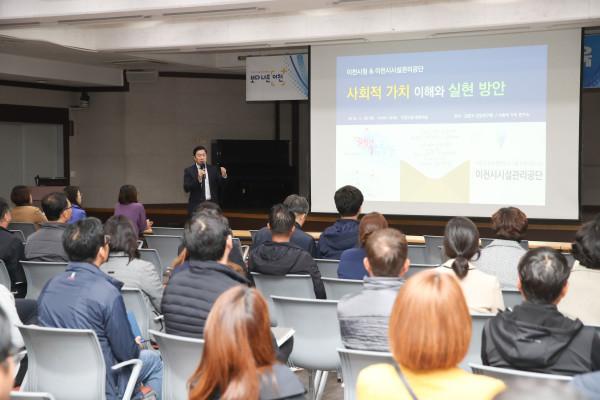경기 이천시가 ‘정부혁신 특별 주간’을 맞아 이천시 직원과 이천시시설관리공단 직원을 대상으로 최근 ‘이천시 정부혁신 직원교육’을 실시했다. 사진은 교육을 받고 있는 시설관리공단 직원들의 모습. (사진제공=이천시청)