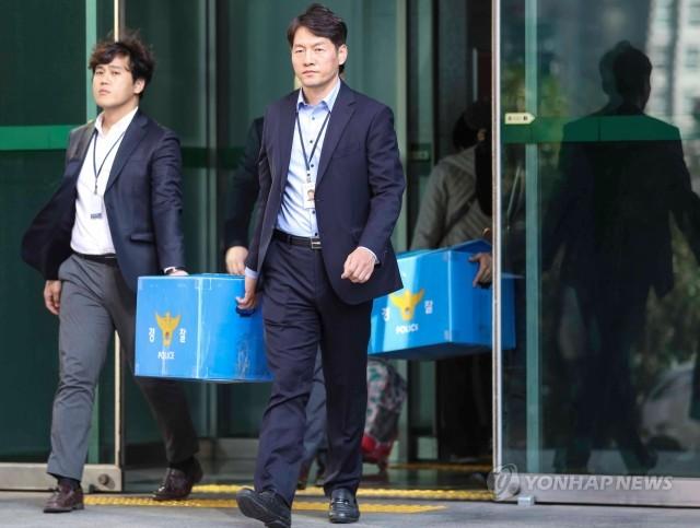 경찰이 국회의원 상대로 불법 후원금을 제공한 의혹을 받는 한국어린이집총연합회(한어총) 사무실을 압수수색해 자료 확보에 나섰다. 서울 마포경찰서는 13일 오전부터 한어총 사무실과 한어총 국공립분과위원회 사무실 등 2곳을 3시간 30분가량 압수수색했다고 밝혔다. 사진은 서울 한어총을 압수수색한 경찰이 압수품을 들고 건물을 나서고 있는 모습.