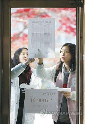 2019학년도 대학수학능력시험을 하루 앞둔 14일 서울 이화여자고등학교에서 수험생이 시험장을 확인하고 있다.
