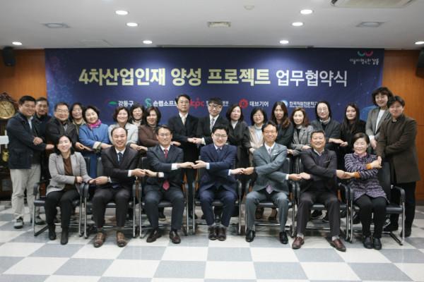 [시민일보=이대우 기자] 서울 강동구(구청장 이정훈)가 ▲손랩소프트 ▲한국생산성본부 ▲데브기어 ▲한국직업전문학교 등 4개 기관과 4차산업 인재 양성 프로젝트를 위한 업무협약을 체결하고 4차산업 인재 양성에 나섰다.