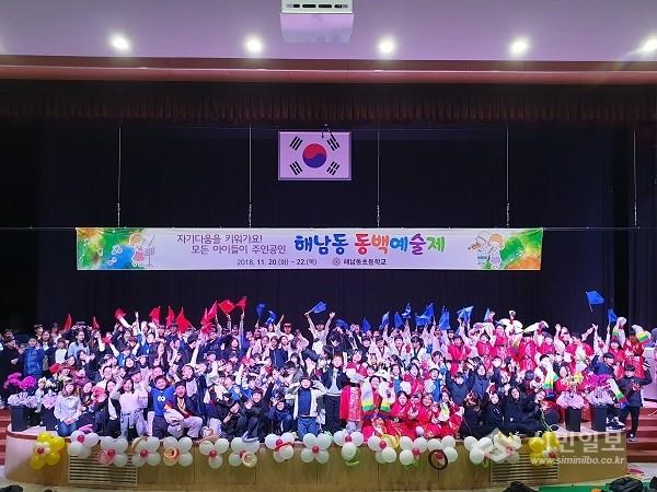 ‘모두가 주인공인 해남동 예술제’라는 슬로건에 맞게 우수작품 위주의 공연을 배제하고 단 한명의 학생도 소외되지 않고, 전교생 모두가 그동안 교육활동에서 익힌 재능과 끼를 마음껏 발휘해 공연하고 전시하는 모습이 돋보였다.