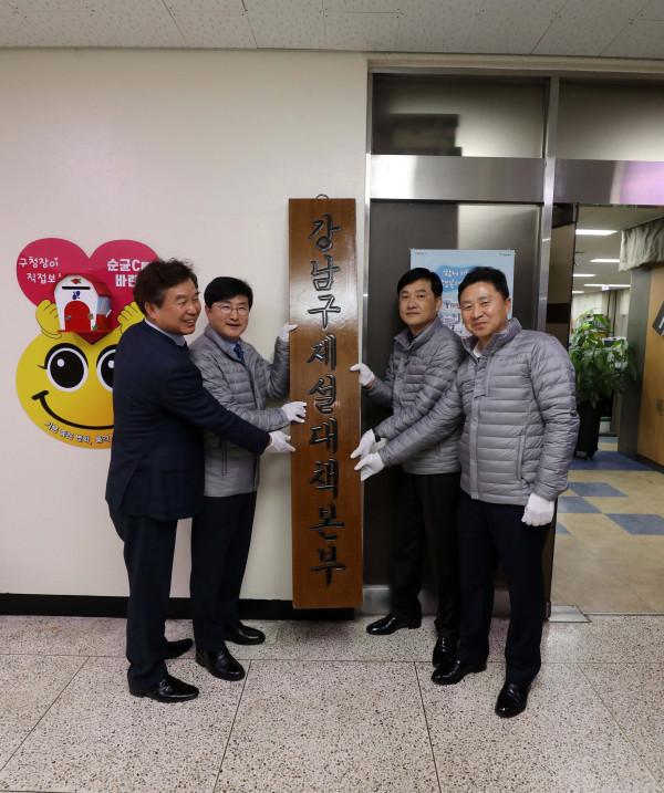 | ▲ 지난 15일 진행된 제설대책본부 현판식 모습. (사진제공=강남구청) | ||